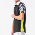 カモ柄の袖とネオンカラーのサイドラインがポイント。