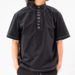 ハーフジップデザインで着脱が簡単にでき背中部分はスリットが入っているため軽量で通気性を考慮したデザインになっております。※オンライン限定商品