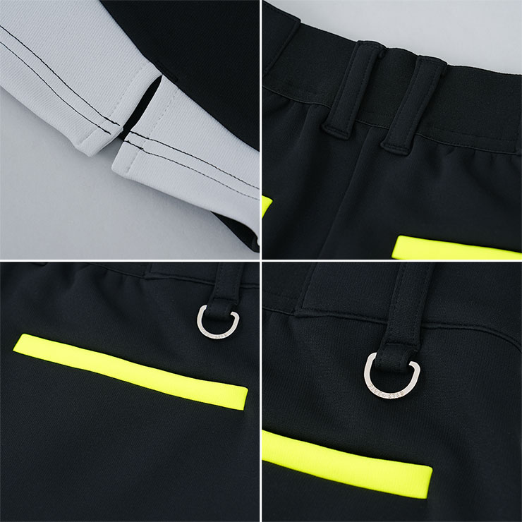 後ろポケットにはネオンイエローのアクセントをプラスし、スタイリッシュさと遊び心を演出。