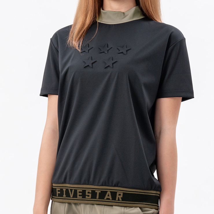 スターエンボス リブ モックネック ブラック