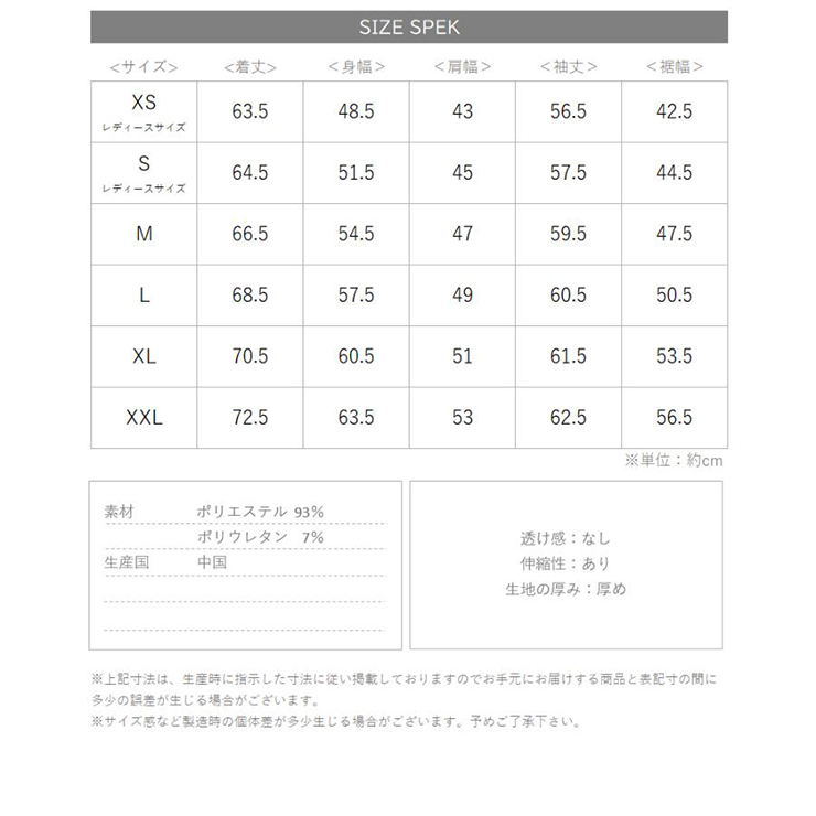 | サイズ | XS S M L XL XXL |