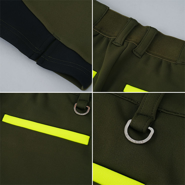 後ろポケットにはネオンイエローのアクセントをプラスし、スタイリッシュさと遊び心を演出。