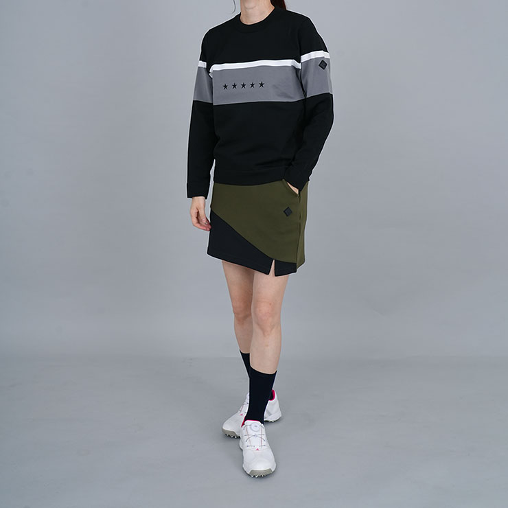 コース映えする切替デザインが特徴的なストレッチゴルフスカート。