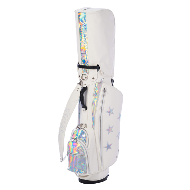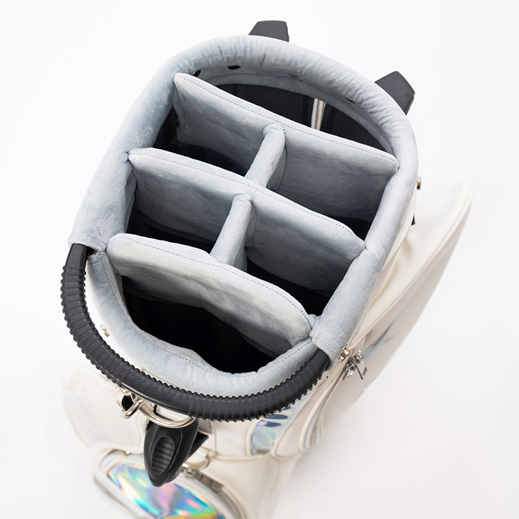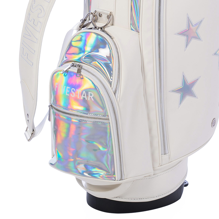 ホログラムの光が煌めく魅惑的なキャディバッグ。