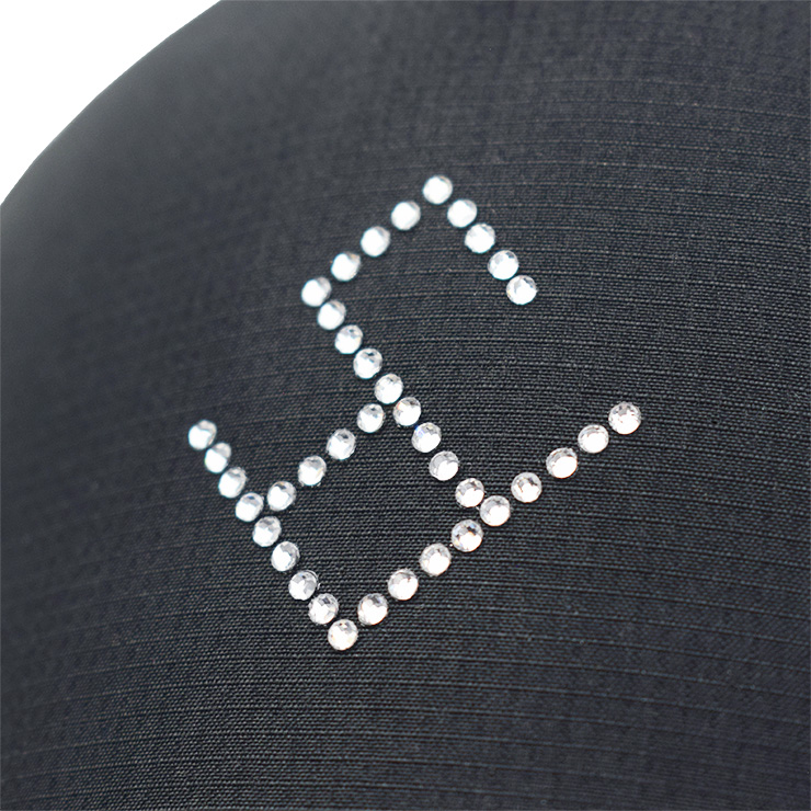 ブラックのベースに、透明感のあるクリスタルストーンが映え、後面には五つ星の刺繍が施されています。