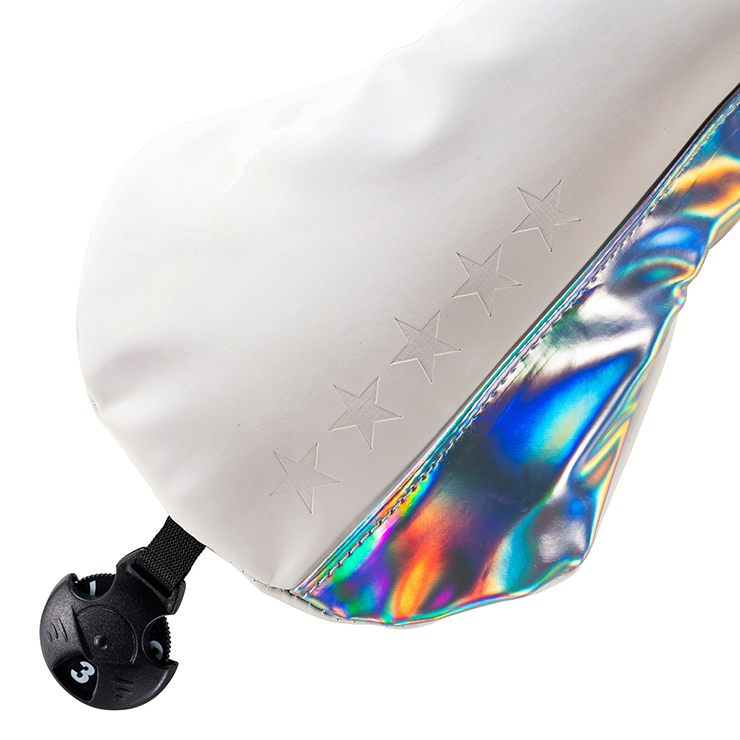 ホログラムの光が煌めく魅惑的なヘッドカバー。