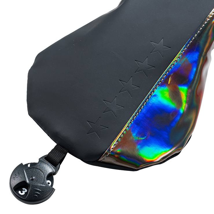 ホログラムの光が煌めく魅惑的なヘッドカバー。