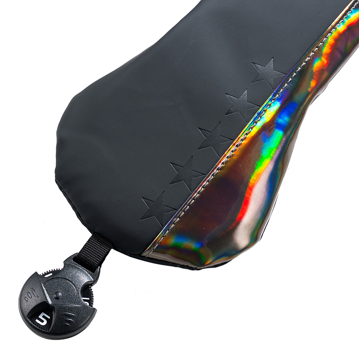 ホログラムの光が煌めく魅惑的なヘッドカバー。